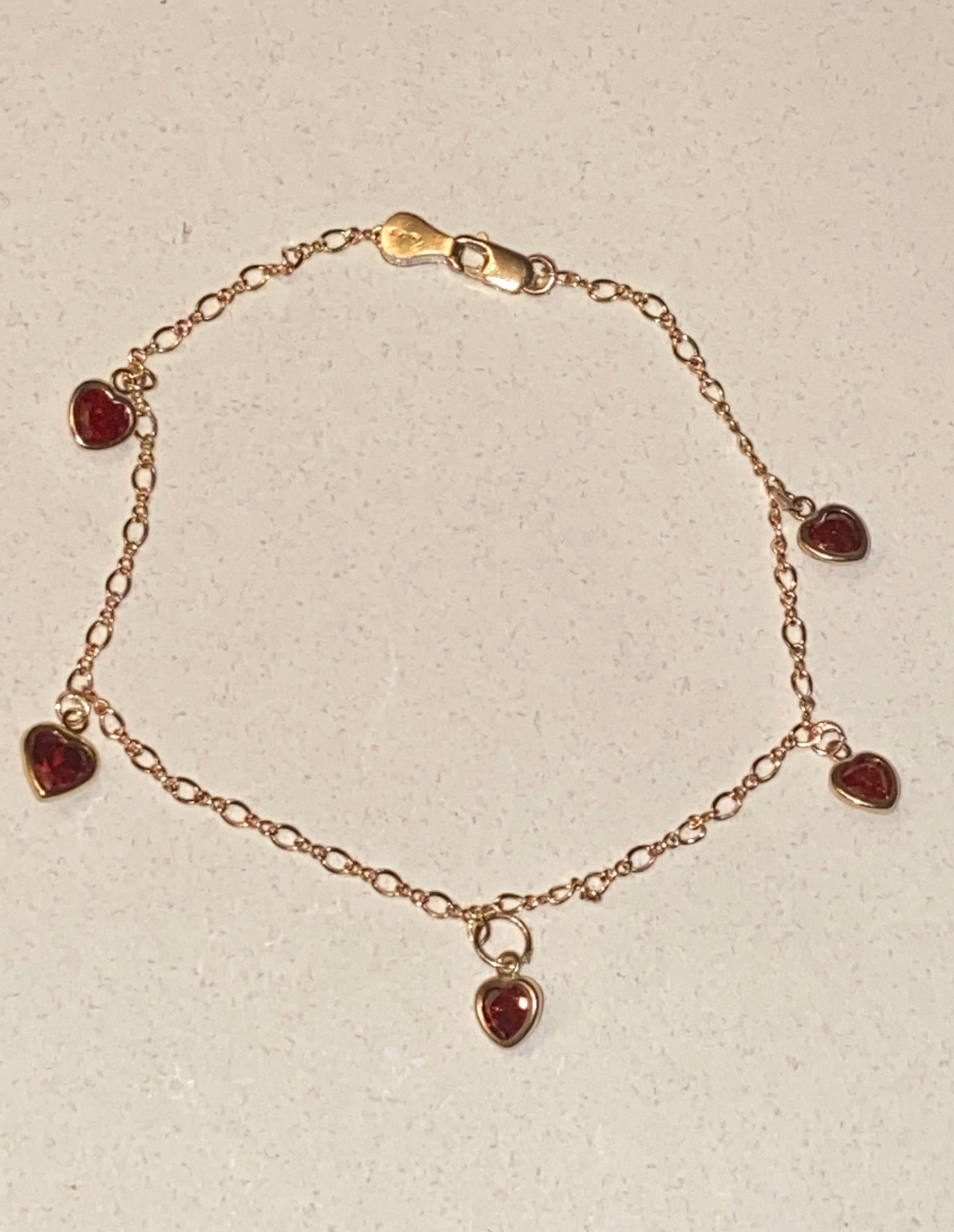 This delicate gold bracelet with its red heart accents is the perfect accessory