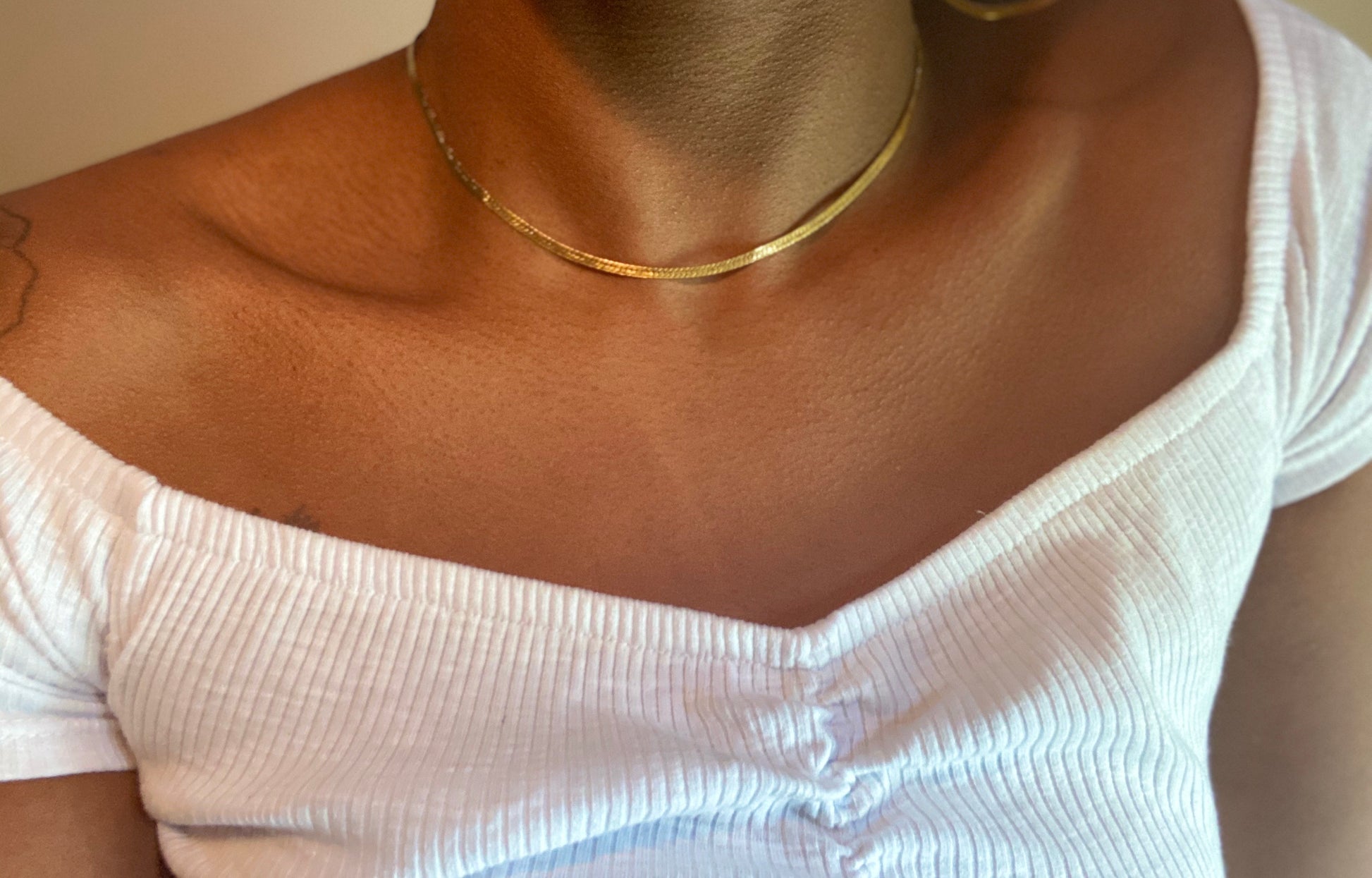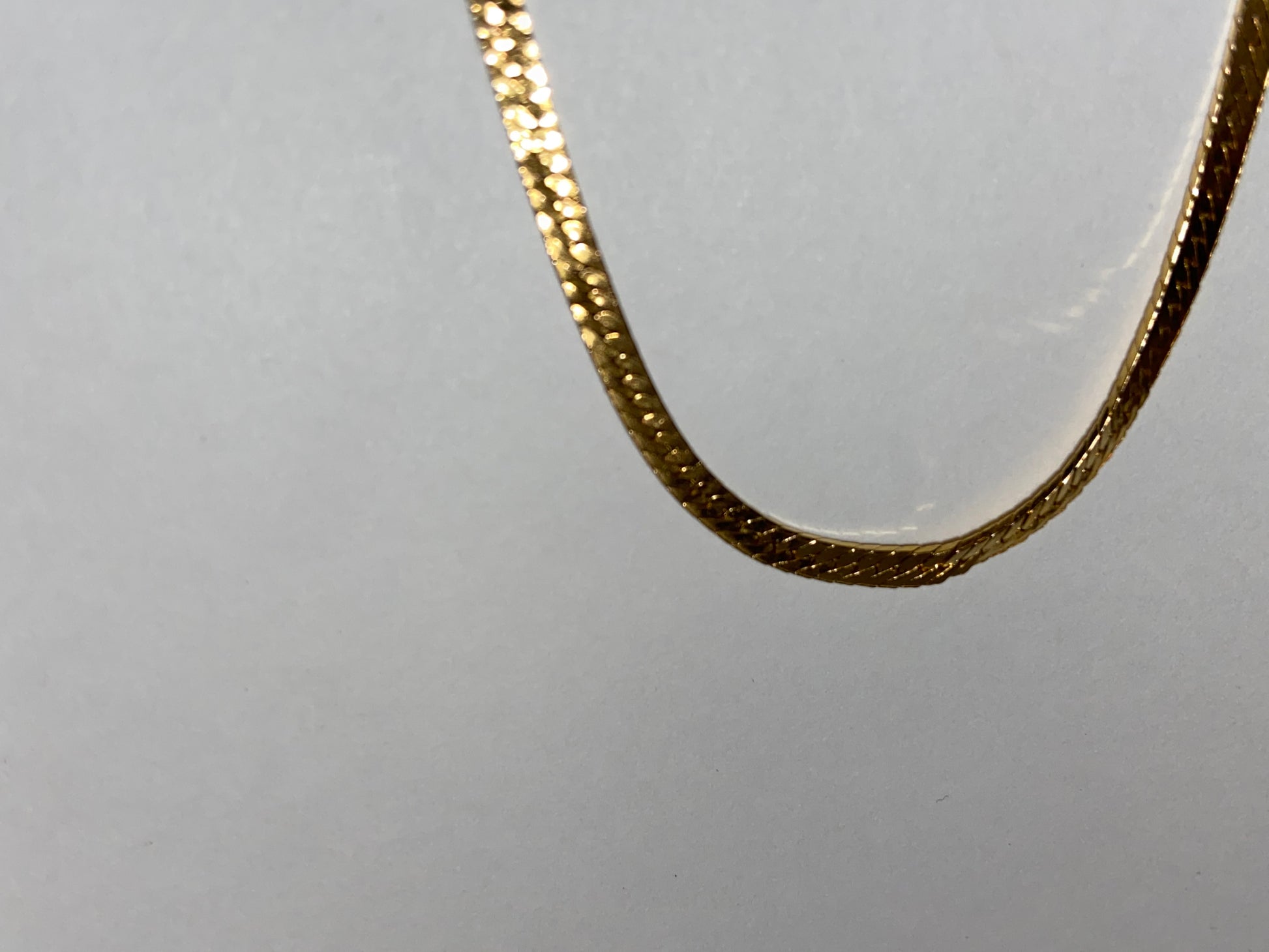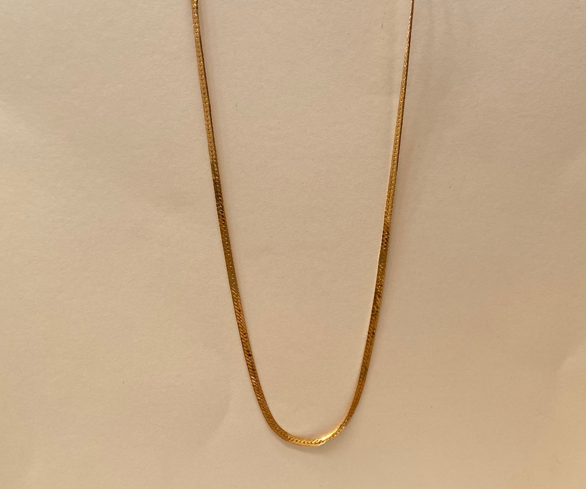 The Herringbone chain is a perfect stand alone chain wrapping your neck in a lovely layer of gold. No charms or other chains needed unless of course you want!