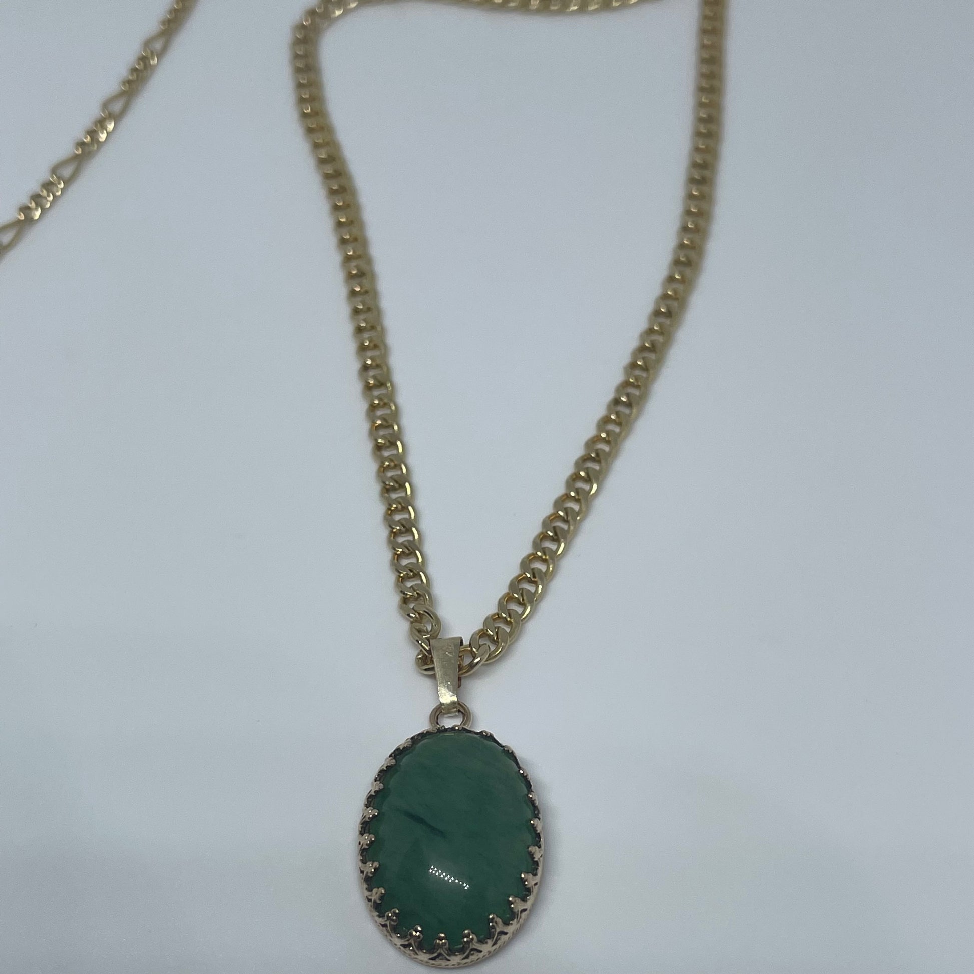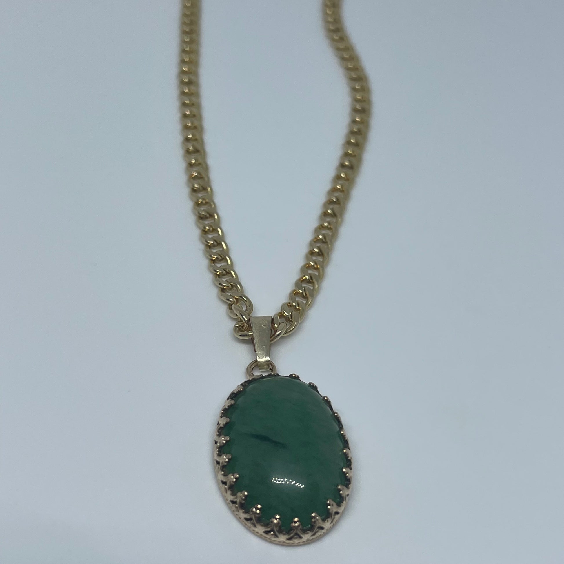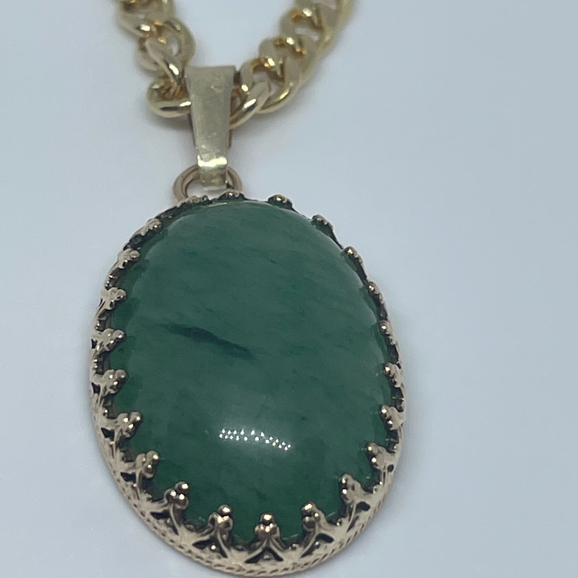 Materials: 14kt Gold Filled Curb chain 3.3mm with 18x13 mm Aventurine cabochon set in 14kt Gold Filled