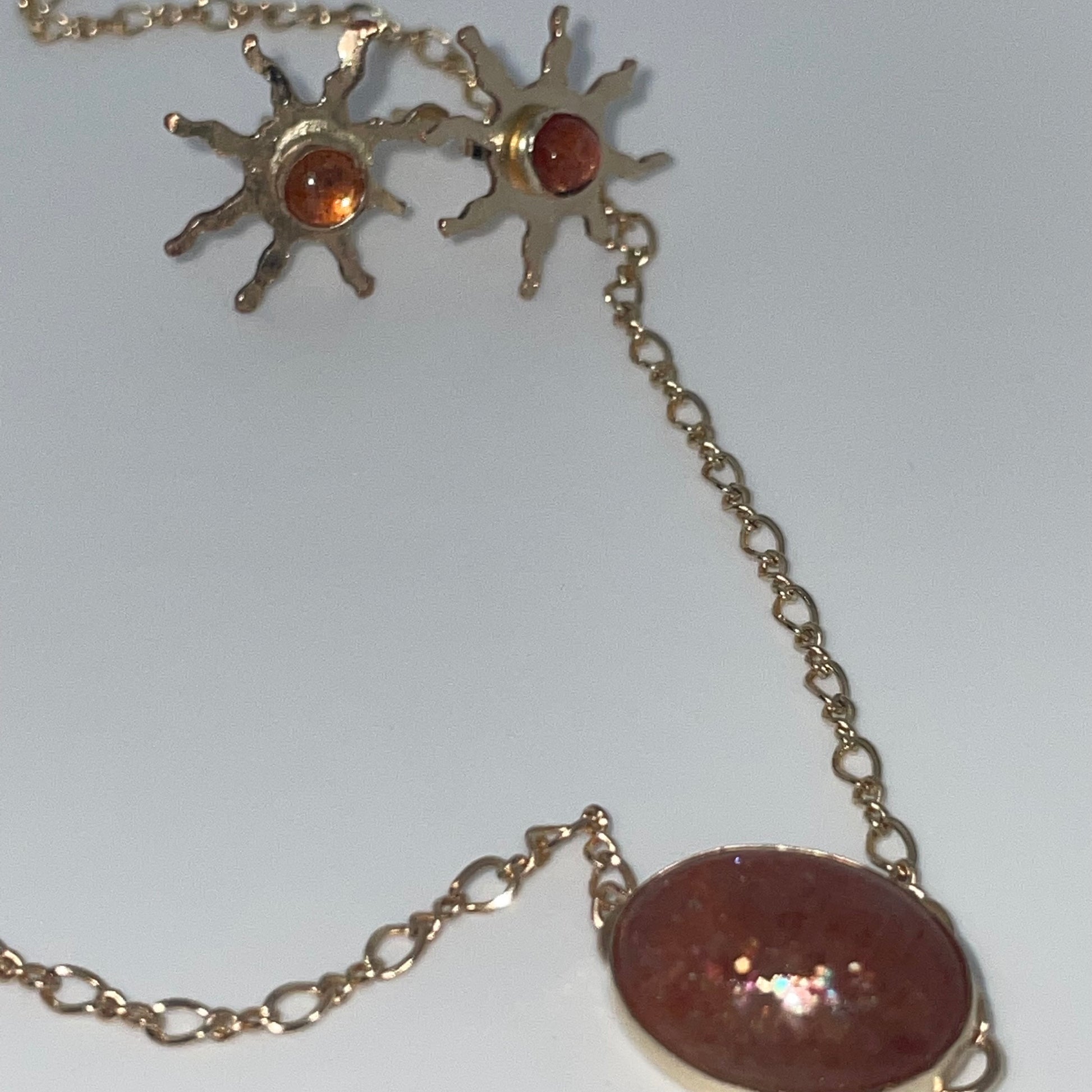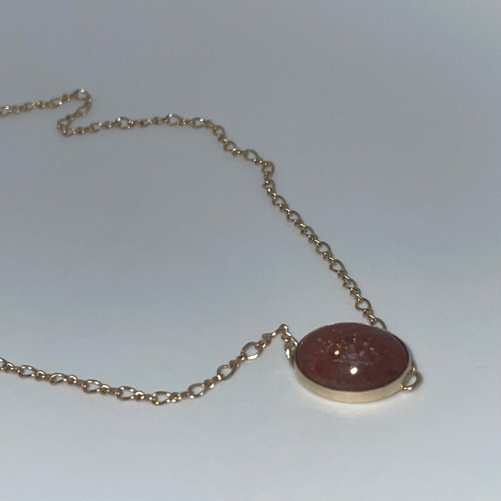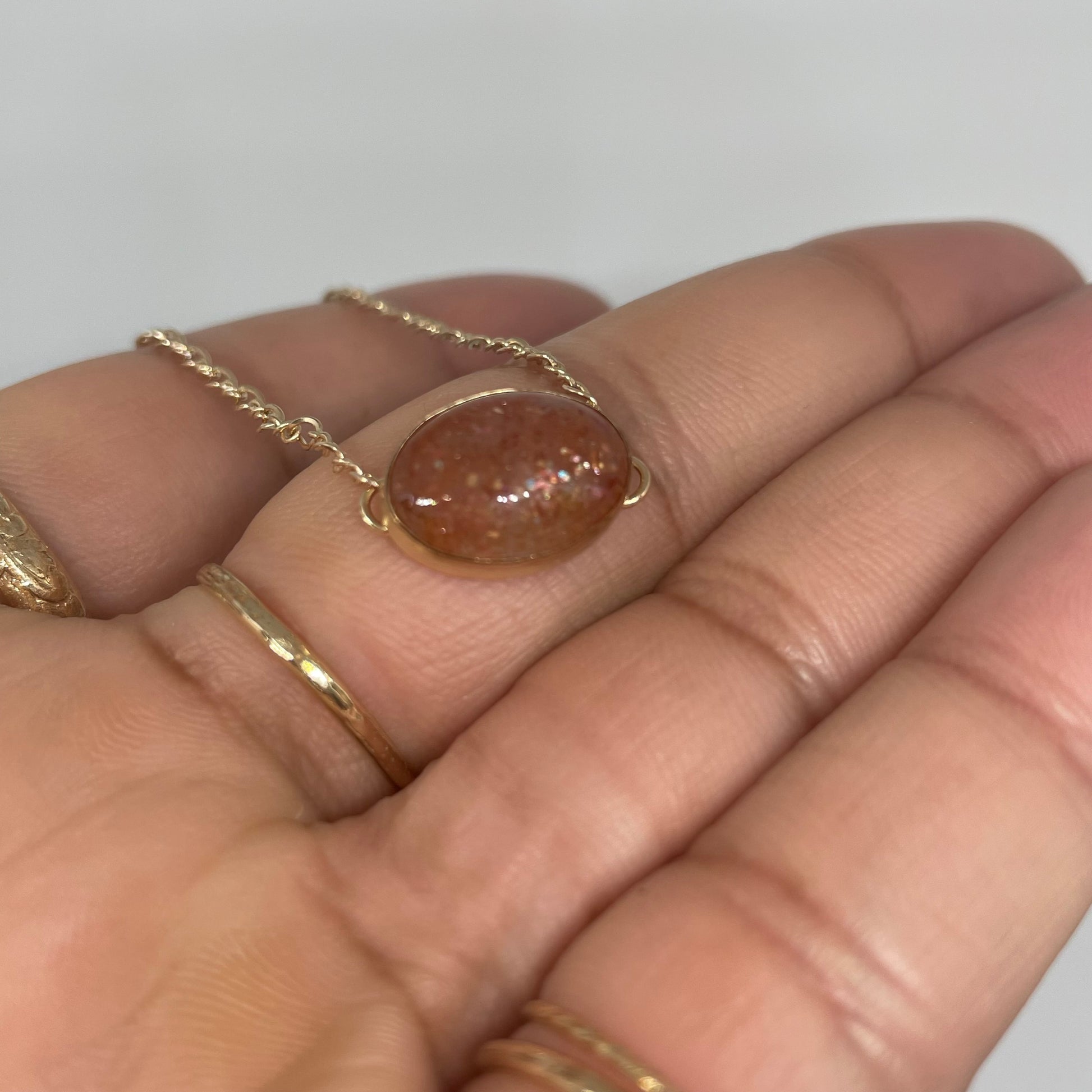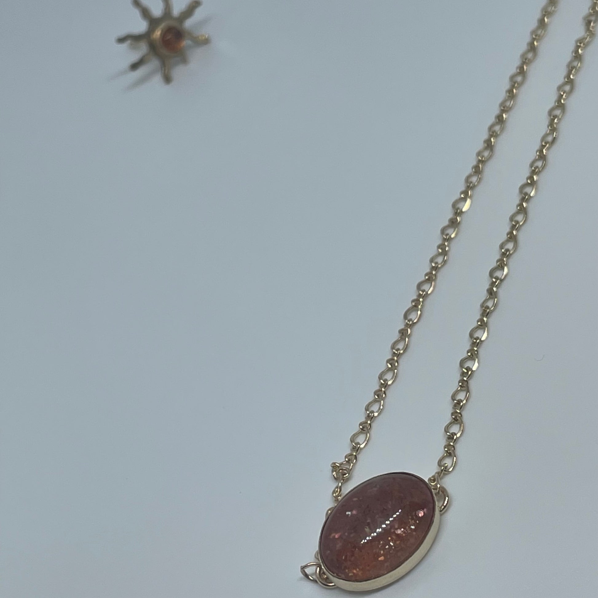 Materials: 14kt Gold Filled cable chain with oval sunstone cabochon set in 14kt Gold Filled