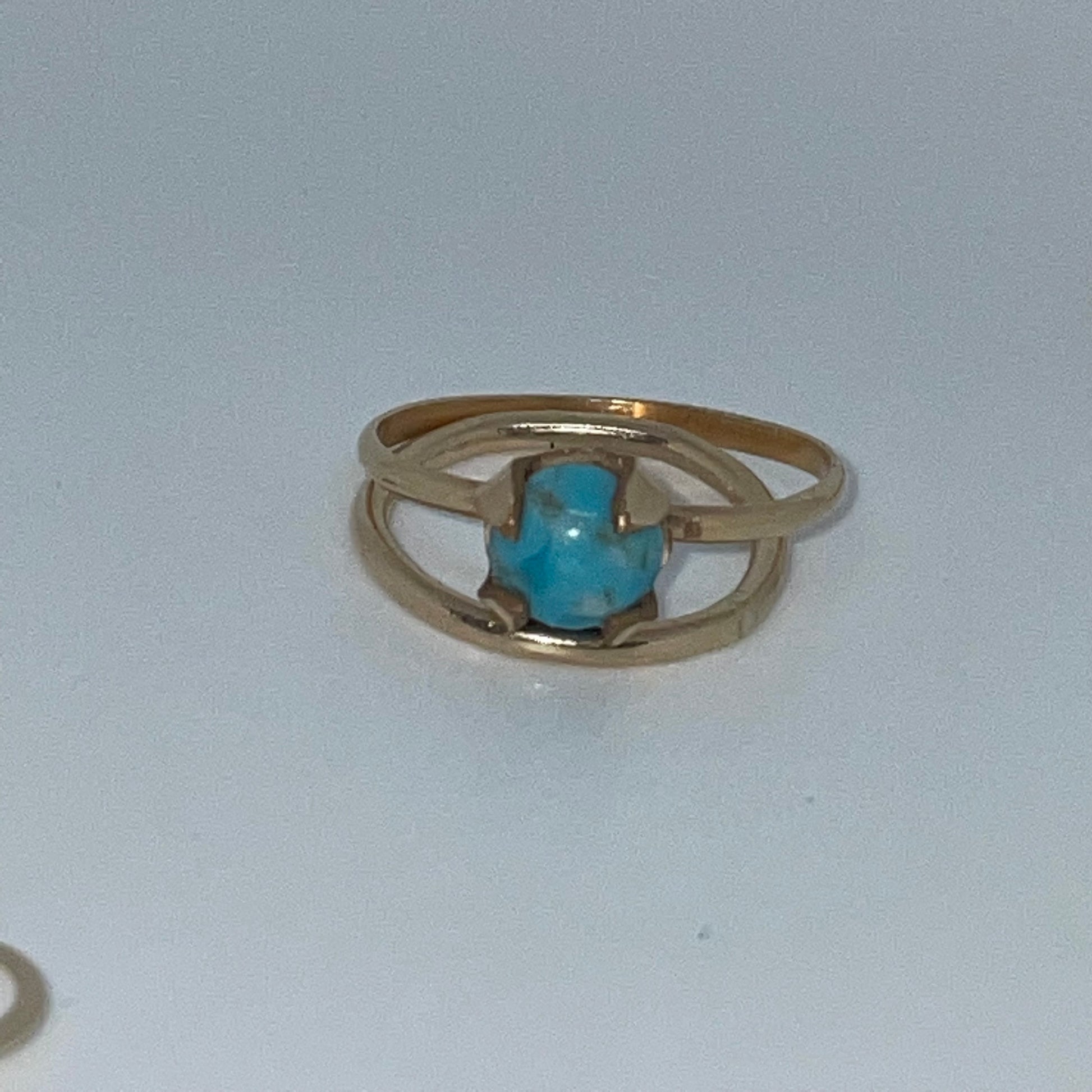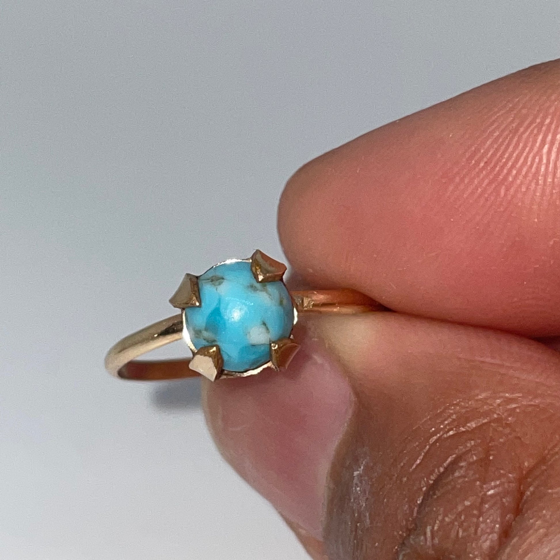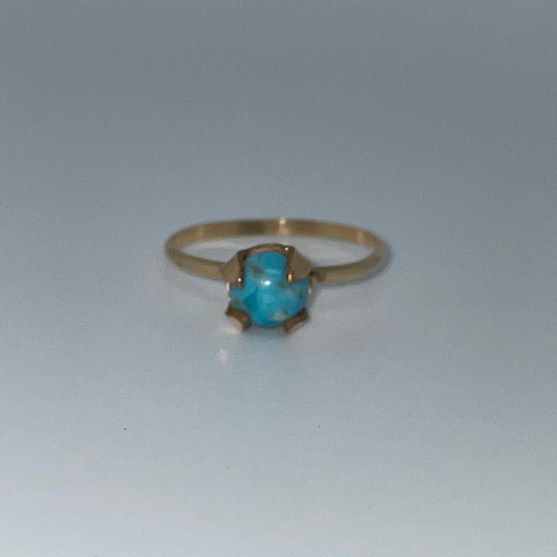 Materials: 14kt Gold filled ring shank and setting & 7mm turquoise cabochon